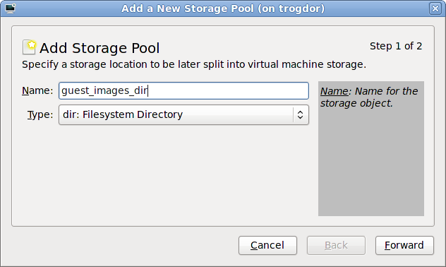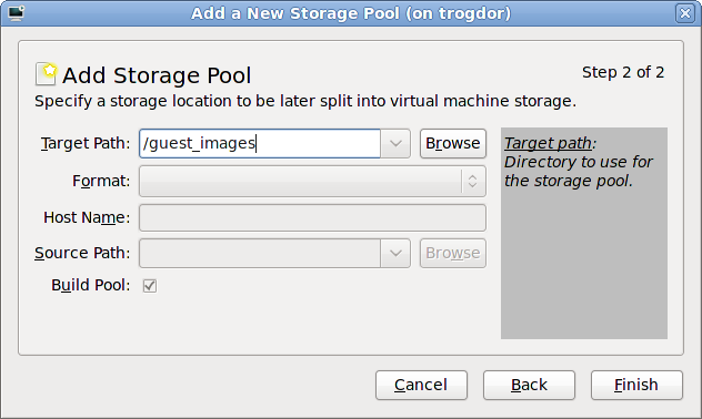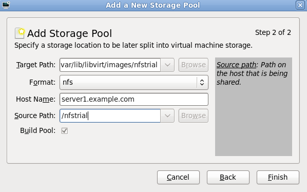 /var/lib/libvirt/images/ folder. If you use a different directory you must add the directory to the SELinux policy. Refer to Section 16.2, “SELinux and virtualization” for details.