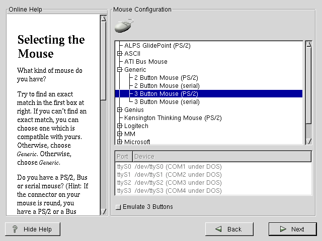 If you cannot find a mouse that you are sure is compatible with your system, select one of the Generic entries, based on your mouse's number of buttons, and its interface.