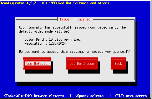 If you're doing a Workstation installation, or if you're doing a Custom installation and you have chosen to install the X Window System, the Xconfigurator utility starts and gives you the opportunity to configure the X server for your system. If you're doing a Server installation or you did not choose to install the X Window System, skip ahead to the section called Finishing Up.