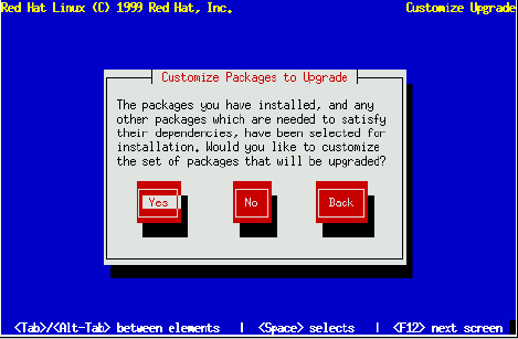 Answer Yes if you want to add to or remove from the list of individual packages to be upgraded. the section called Selecting Individual Packages shows the dialogs and explains how to use them. The upgrade starts when you finish making your changes.